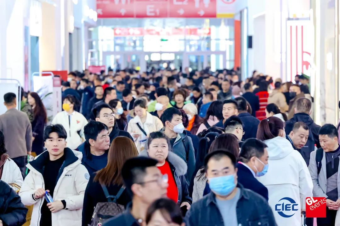The exhibition venue is bustling with attendees
