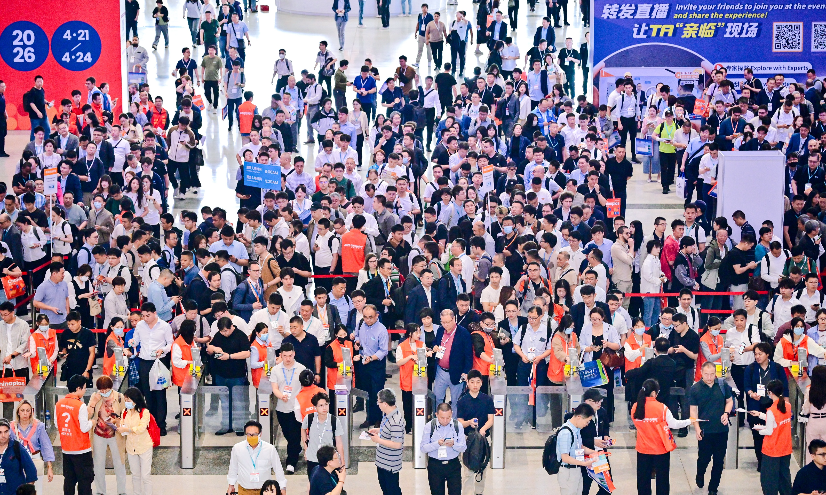 2025年4月15日,全球橡塑行业的目光聚焦鹏城!今日,CHINAPLAS 2025国际橡塑展在深圳国际会展中心(宝安)盛大开幕,正式拉开了为期四天的行业顶级盛会序幕。作为全球橡塑产业链的风向标,本届展会以“变革·协作·共塑可持续”为主题,汇聚全球4500多家优质展商,展示面积达38万平方米,全方位呈现橡塑科技的前沿成果与创新应用。今日上午,深圳国际会展中心19个展厅全面开放,现场人头攒动,气氛热烈。来自全球的行业精英、专业买家及媒体代表齐聚于此,共同见证这一行业盛会的盛大开幕。