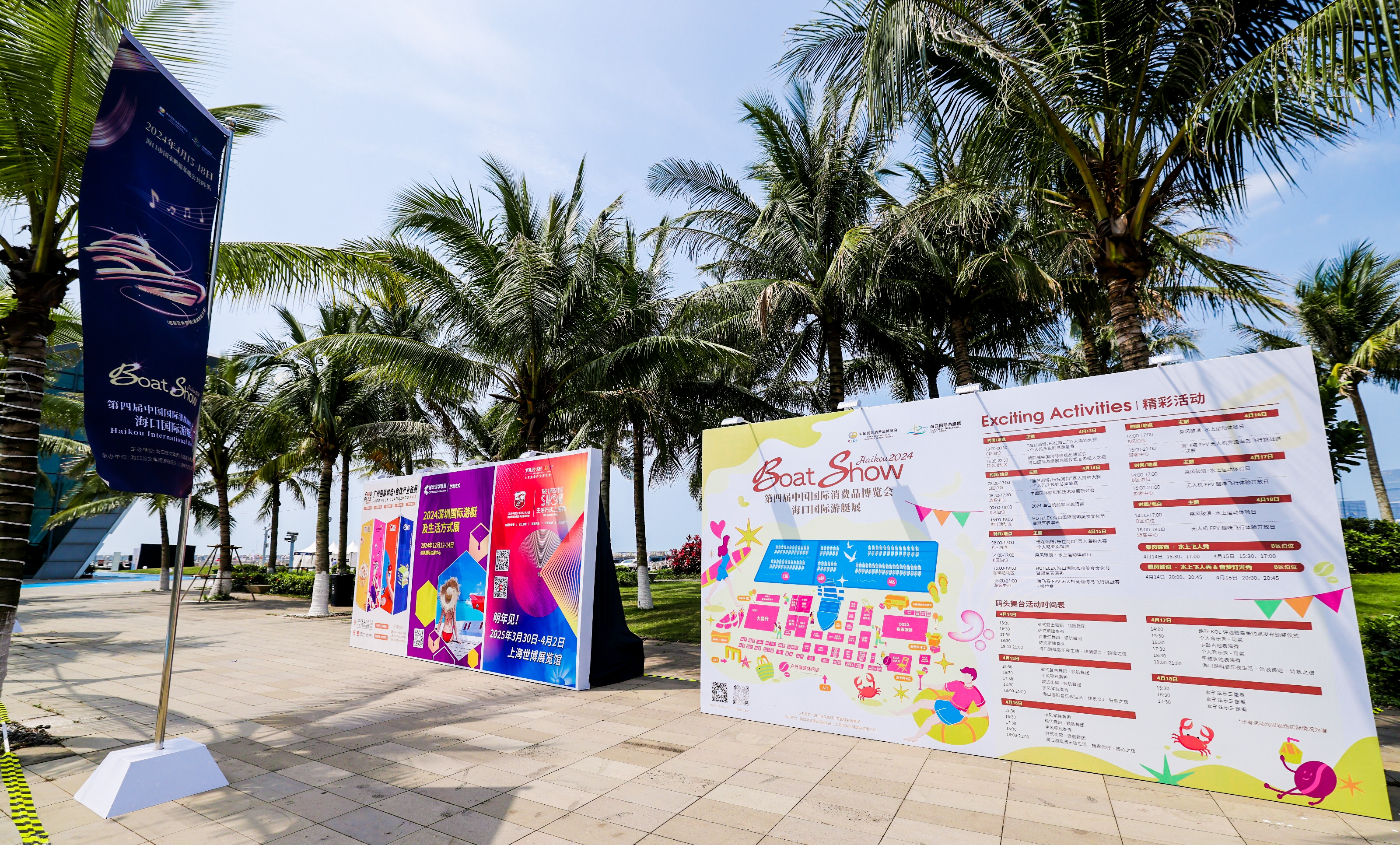 4月13日晚,第四届中国国际消费品博览会海口国际游艇展(以下简称“消博会游艇展”)在海口市国家帆船基地公共码头启幕。消博会游艇展从4月13日持续至18日,展会总规模达陆上1.5万平方米、水上17万平方米,设置水上展区和陆上展区,不仅展出游艇、帆船、新型船艇,还融合了海钓赛事、水上表演、皮划艇和桨板体验等活动,来宾可观展、登艇、观看表演及感受互动体验。同时,打造优质的海口生活方式体验空间,为市民们带来一场集“游艇、户外生活、旅游”于一体的现代时尚生活体验。